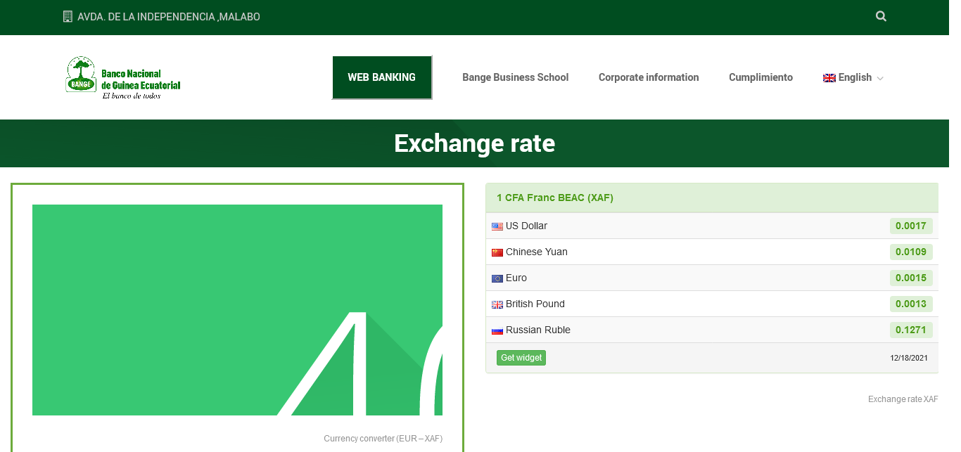 Banco Nacional de Guinea Ecuatorial http://www.bannge.com/en/exchange-rate/