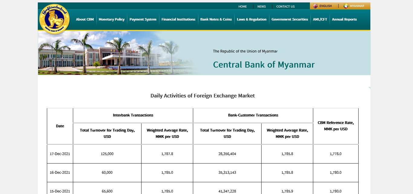 Central Bank of Myanmar https://www.cbm.gov.mm/foreign-exchange-market
