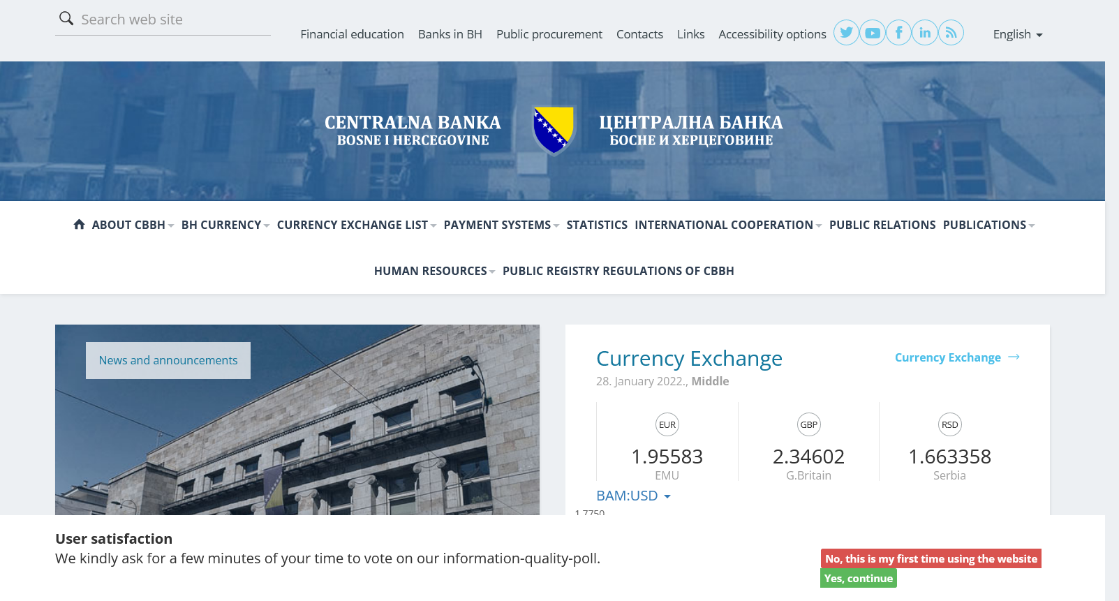 The Central Bank of Bosnia and Herzegovina https://www.cbbh.ba/?lang=en