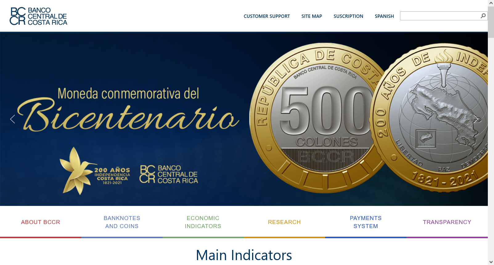 Banco Central De Costa Rica https://www.bccr.fi.cr/en/SitePages/Home.aspx
