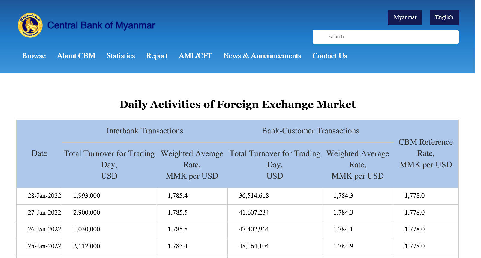 Central Bank of Myanmar https://www.cbm.gov.mm/foreign-exchange-market