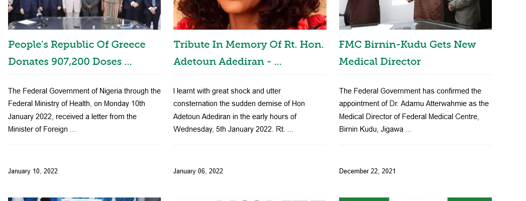 Federal Ministry of Health of Nigeria News – People’s Republic of Greece Donates 907,200 Doses of Johnson and Johnson Covid-19 Vaccines Federal Ministry of Health of Nigeria News Share this: Share on X (Opens in new window) X Share on Facebook (Opens in new window) Facebook Like Loading... Related