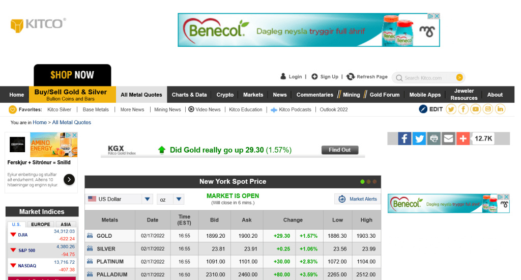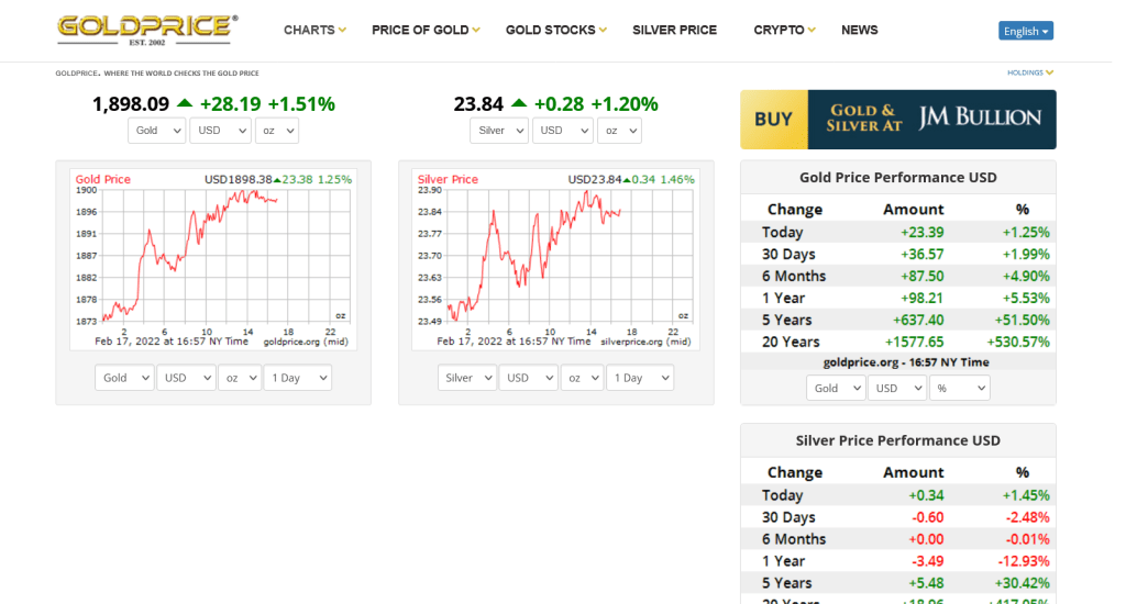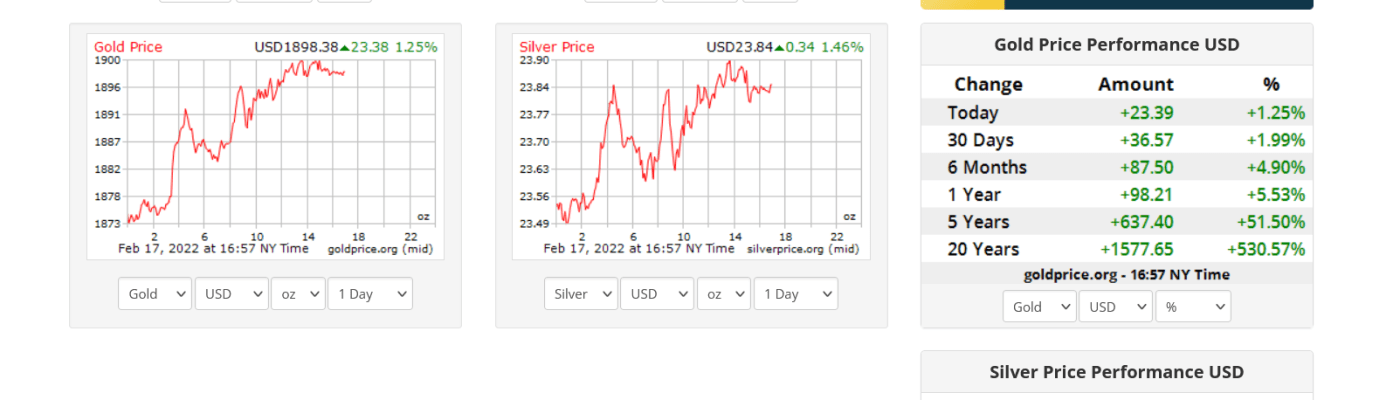 Gold, Silver and Metal Prices – 21:59 GMT 17th February 2022