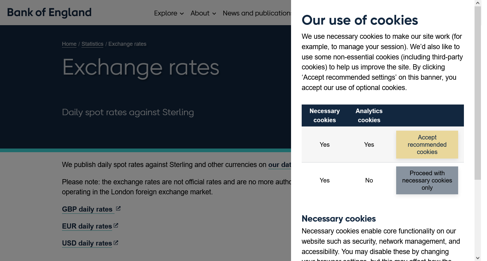 Bank of England https://www.bankofengland.co.uk/statistics/exchange-rates