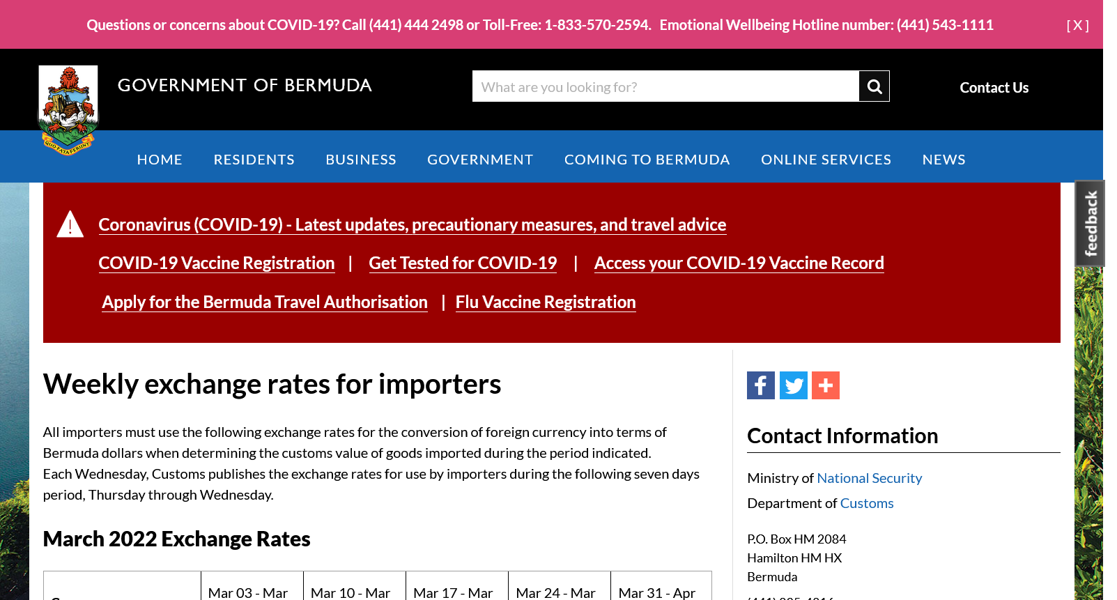 Government of Bermuda https://www.gov.bm/weekly-exchange-rates-importers