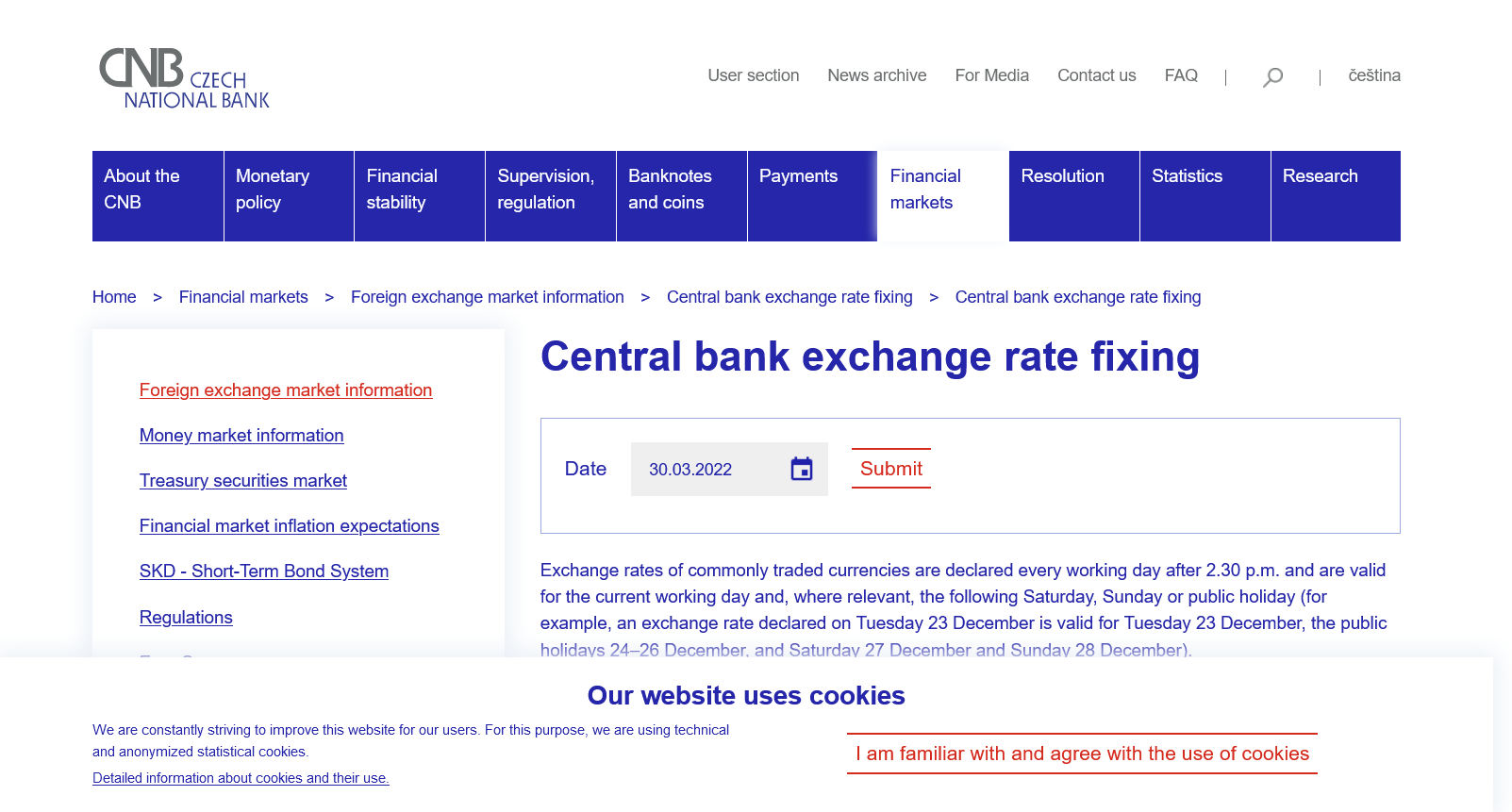 Czech National Bank https://www.cnb.cz/en/financial-markets/foreign-exchange-market/central-bank-exchange-rate-fixing/central-bank-exchange-rate-fixing/
