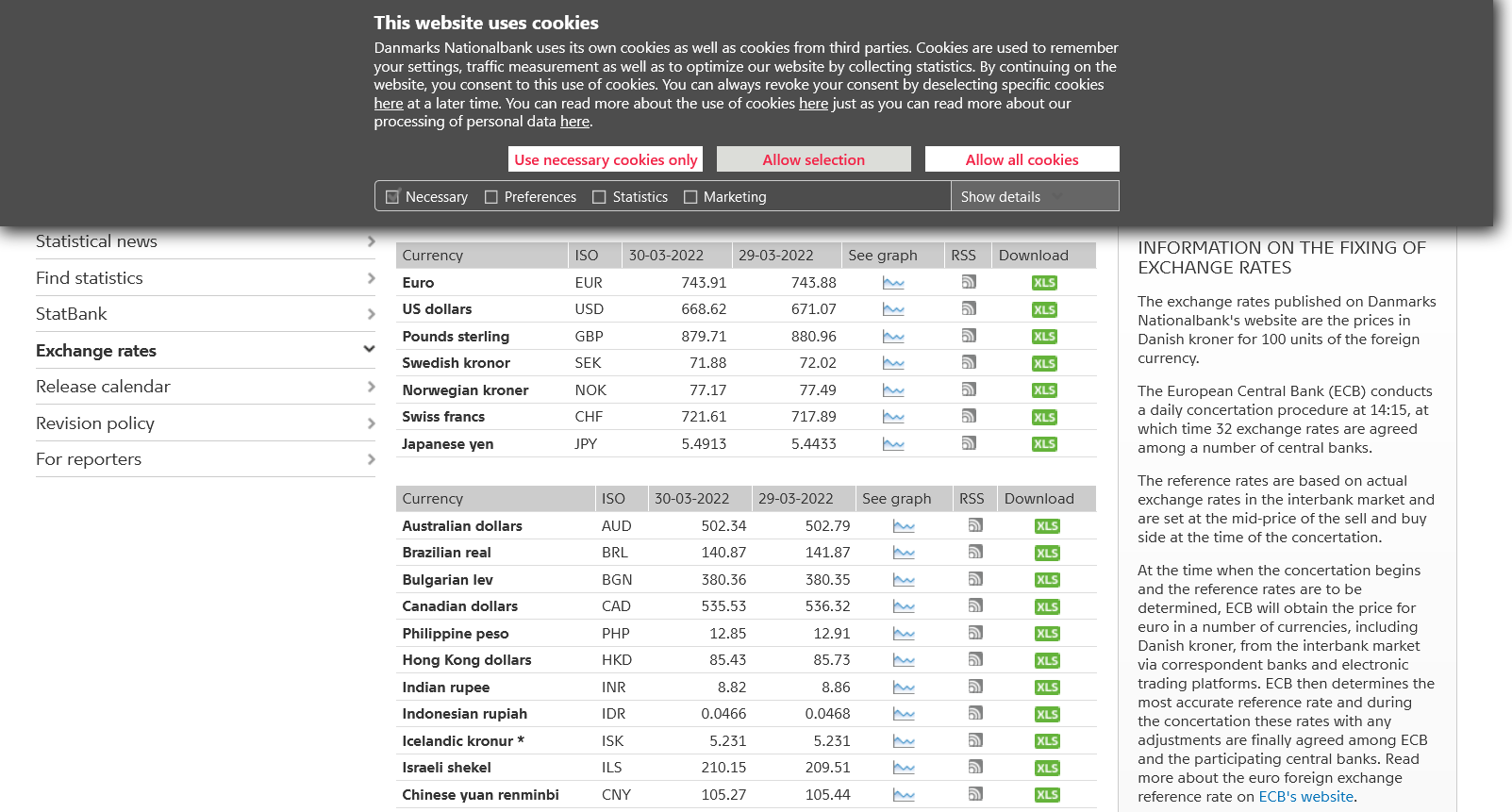 Danmarks National Bank https://www.nationalbanken.dk/en/statistics/exchange_rates/Pages/Default.aspx