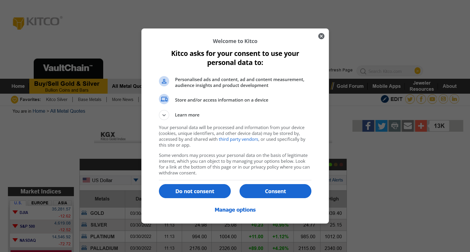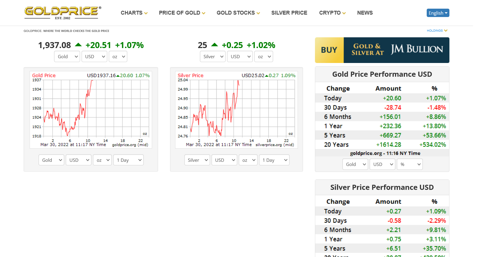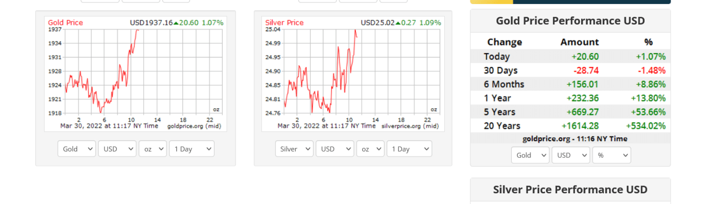 Gold, Silver and Metal Prices – 16:12 GMT 30th March 2022
