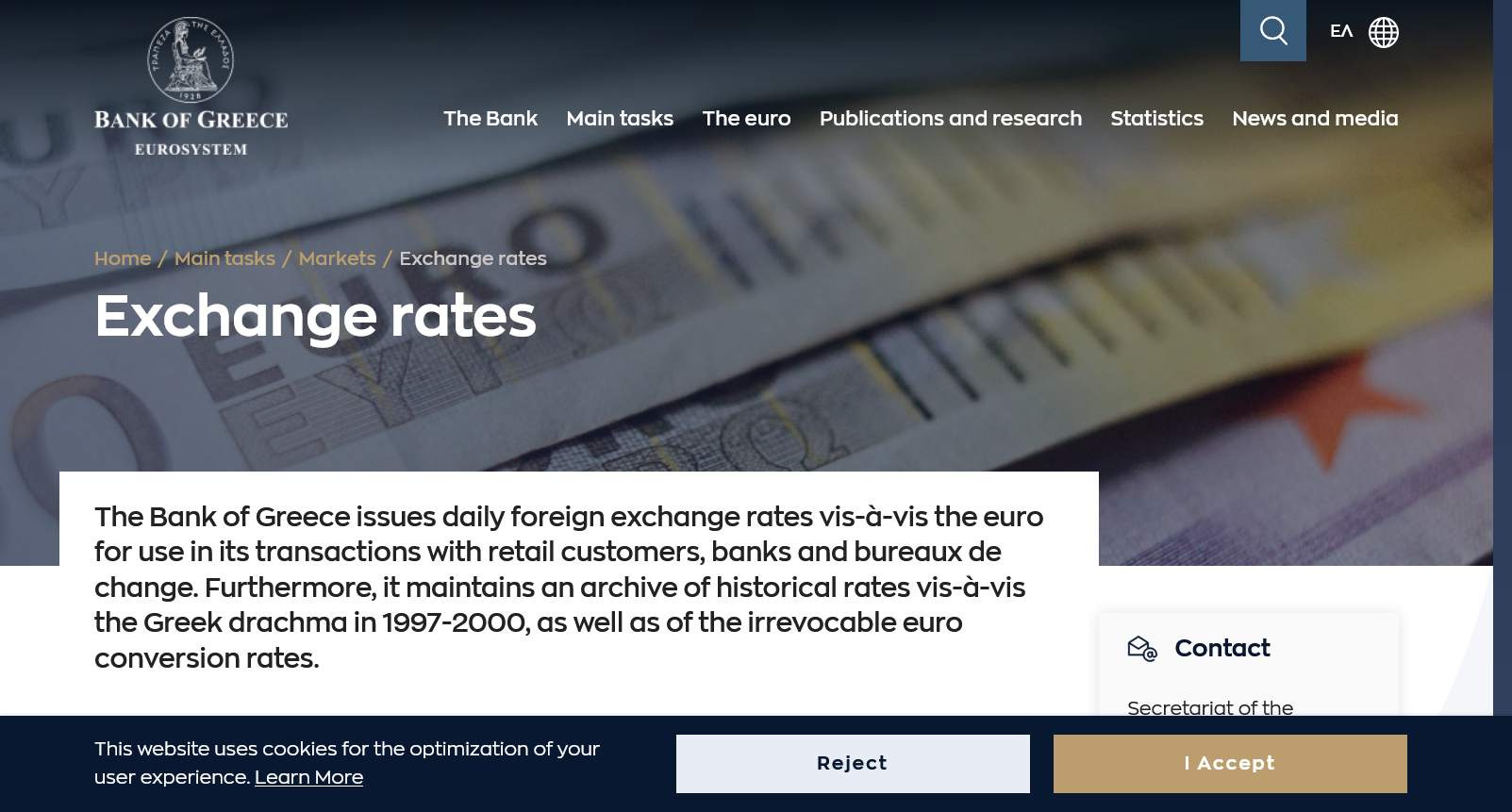 Bank of Greece https://www.bankofgreece.gr/en/main-tasks/markets/exchange-rates