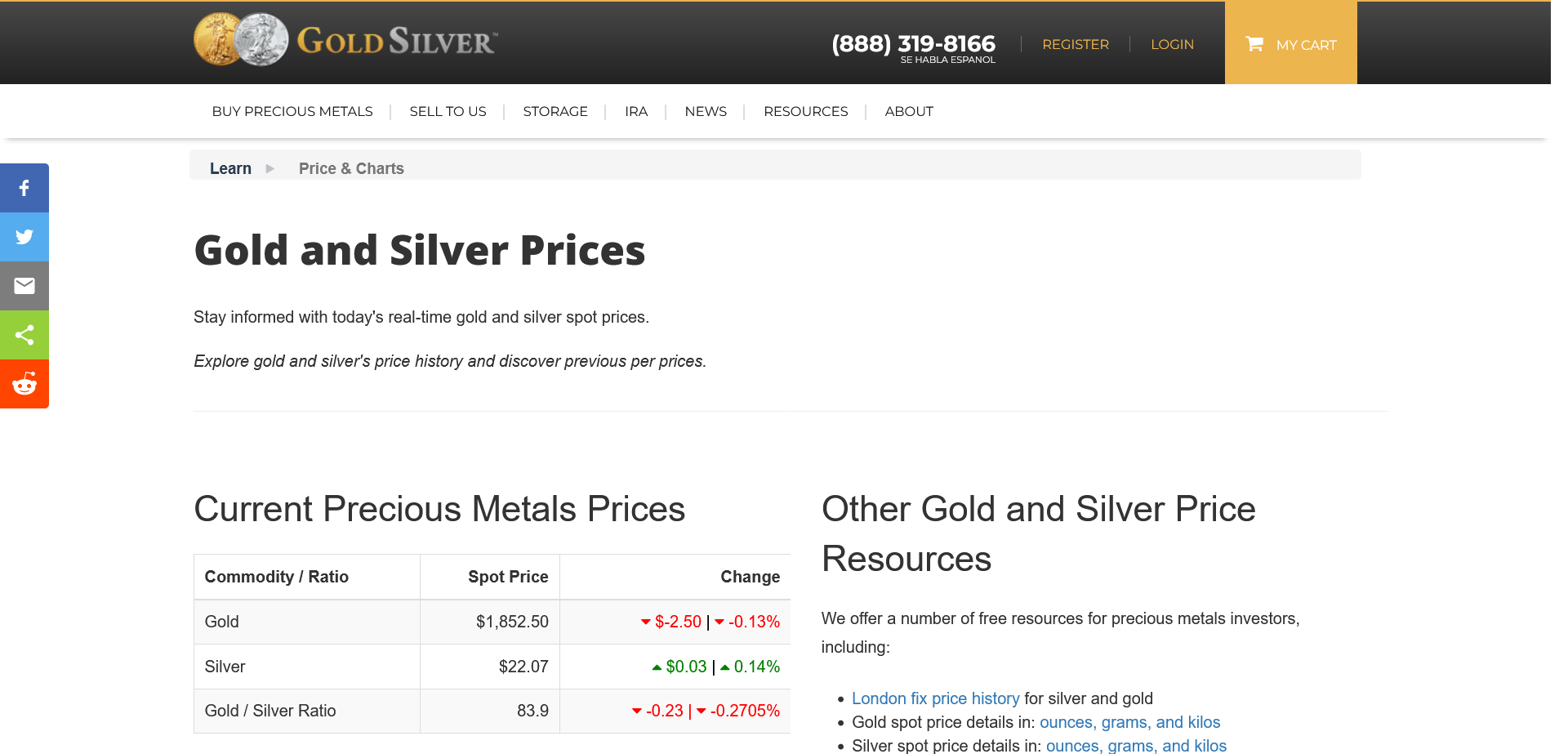 GoldSilver https://goldsilver.com/price-charts/