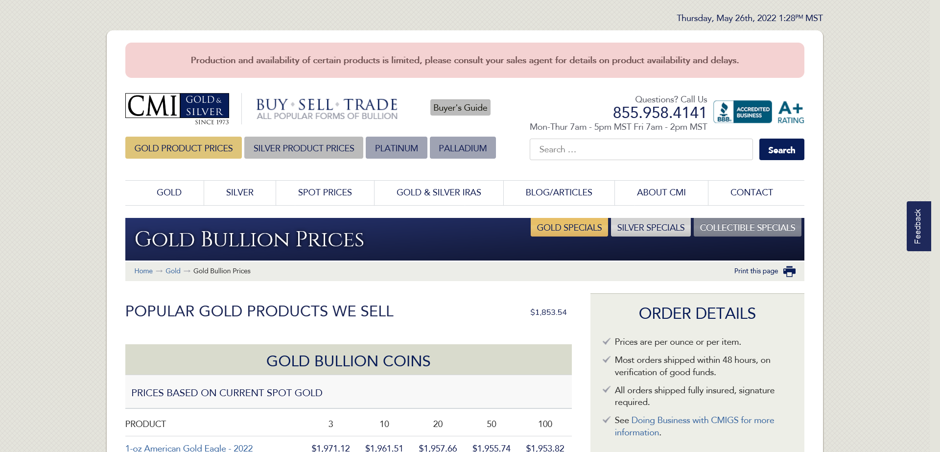 CMI Gold & Silver https://www.cmi-gold-silver.com/gold-bullion-prices/