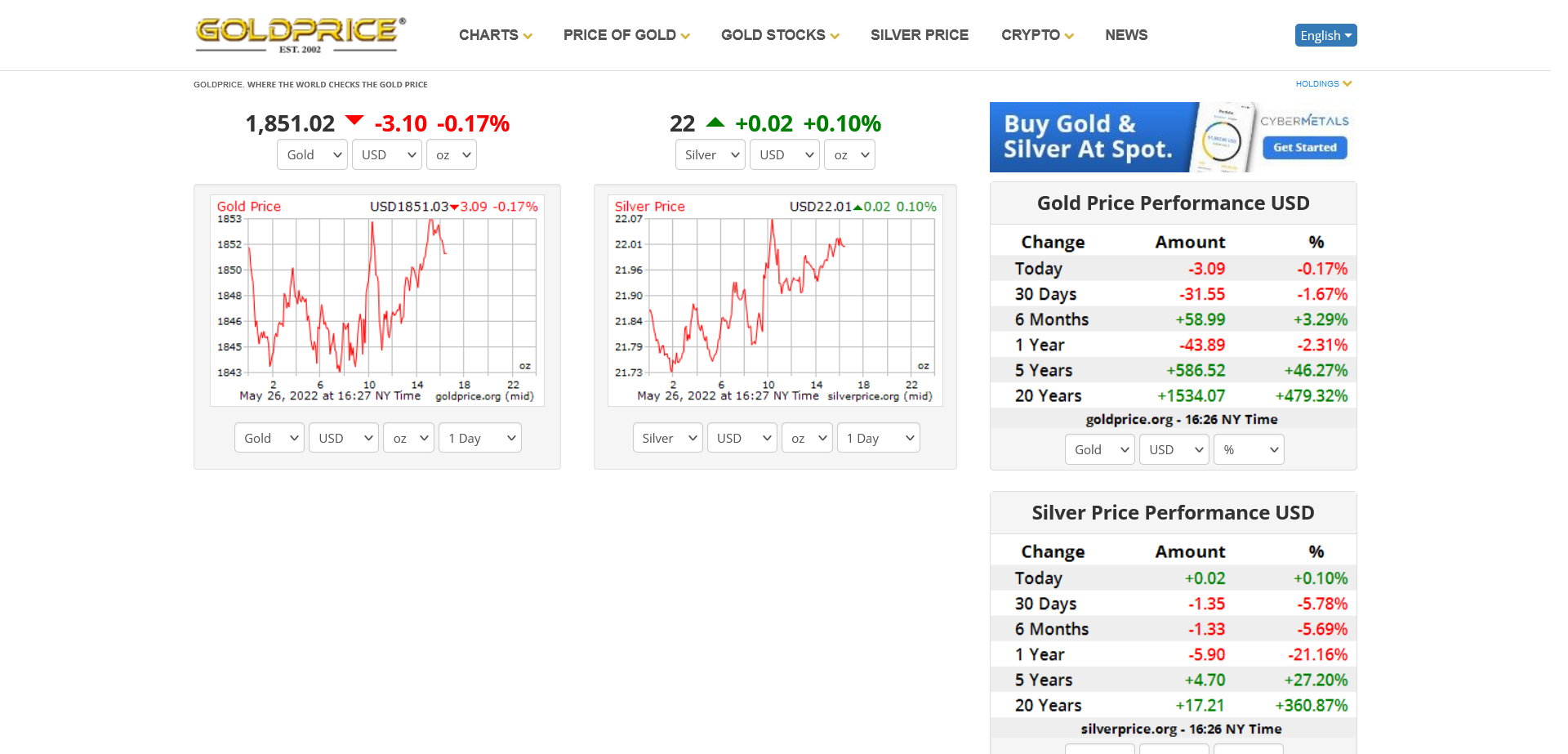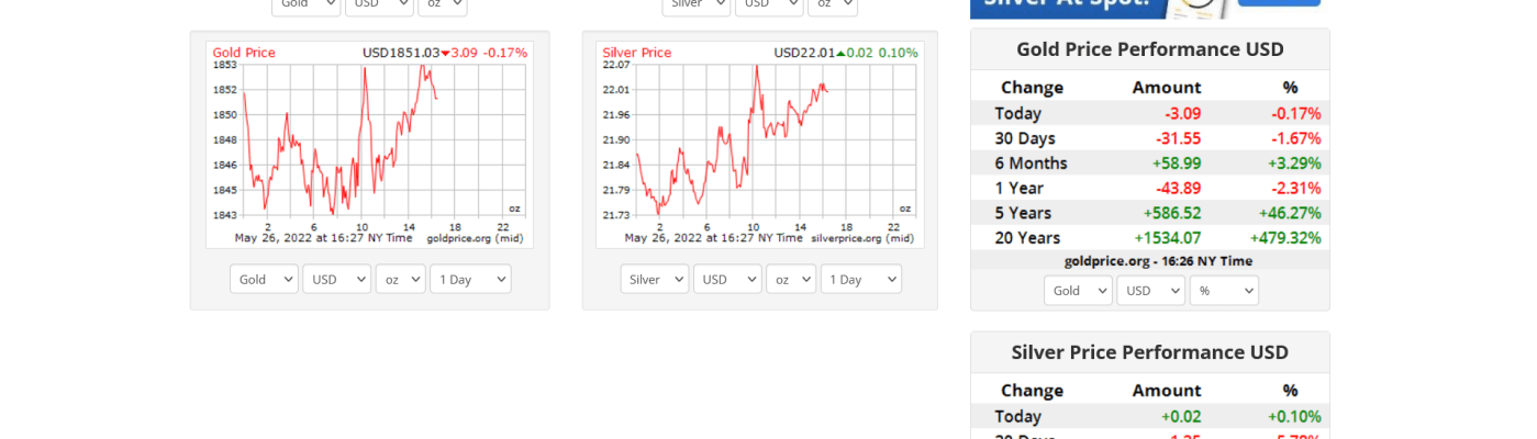 Gold, Silver and Metal Prices – 20:30 GMT 26th May 2022