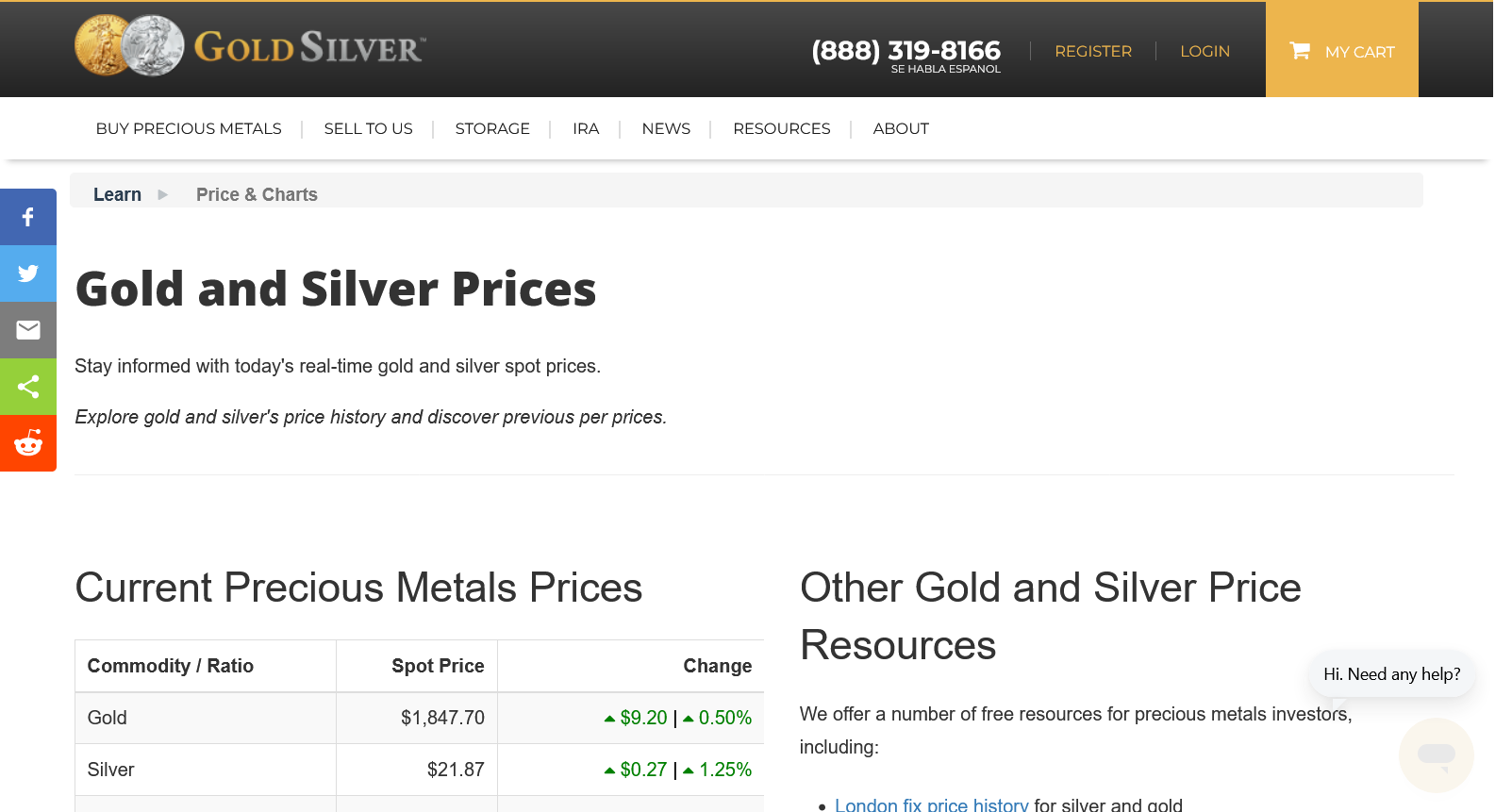 GoldSilver https://goldsilver.com/price-charts/