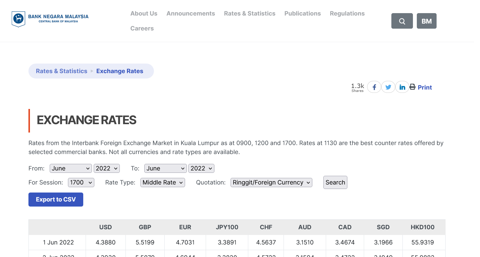 Bank Negara of Malaysia https://www.bnm.gov.my/exchange-rates