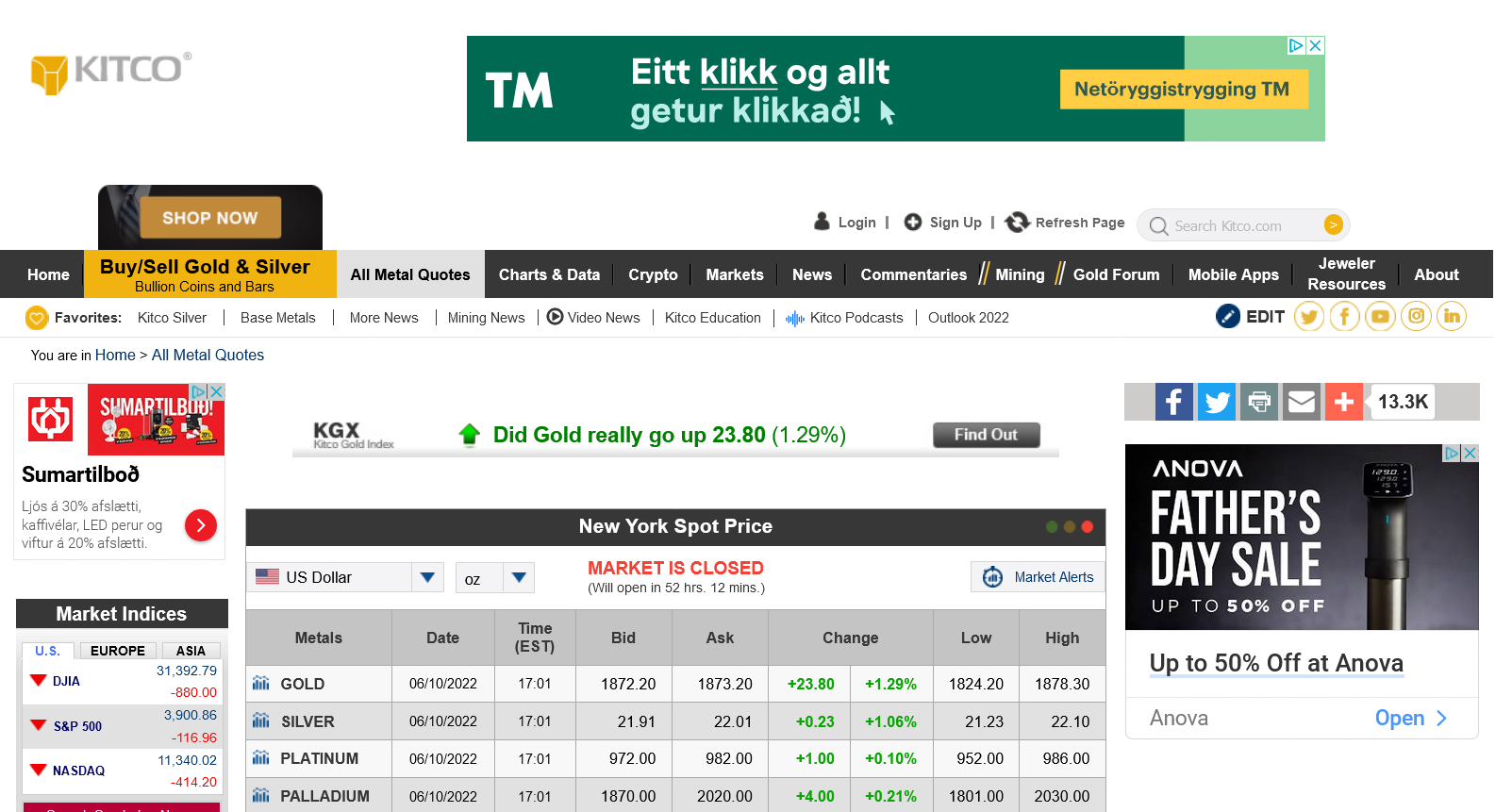 KITCO https://www.kitco.com/market/