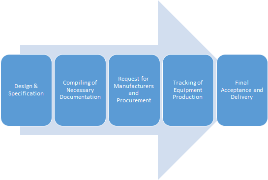 The engineering company embarks upon either preliminary or detailed design, depending on the equipment type. Upon finalising of mechanical requirements, a procurement process is embarked upon to involve various vendors and manufacturers.