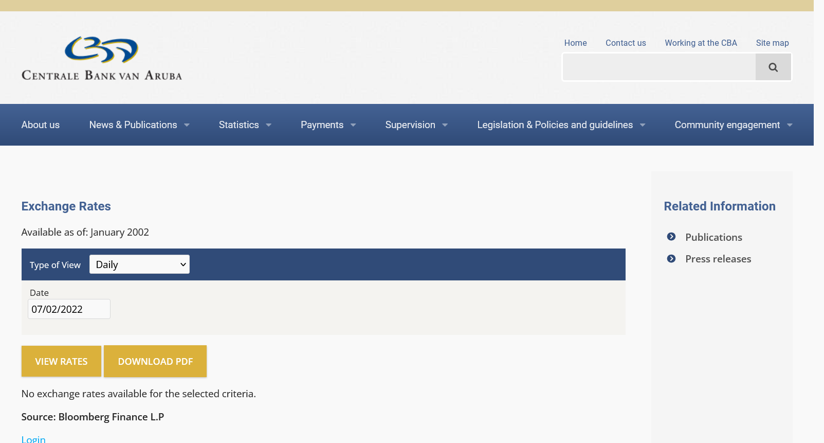 Centrale Bank Van Aruba https://www.cbaruba.org/cba/getExchangeRates.do?dispatch=daily