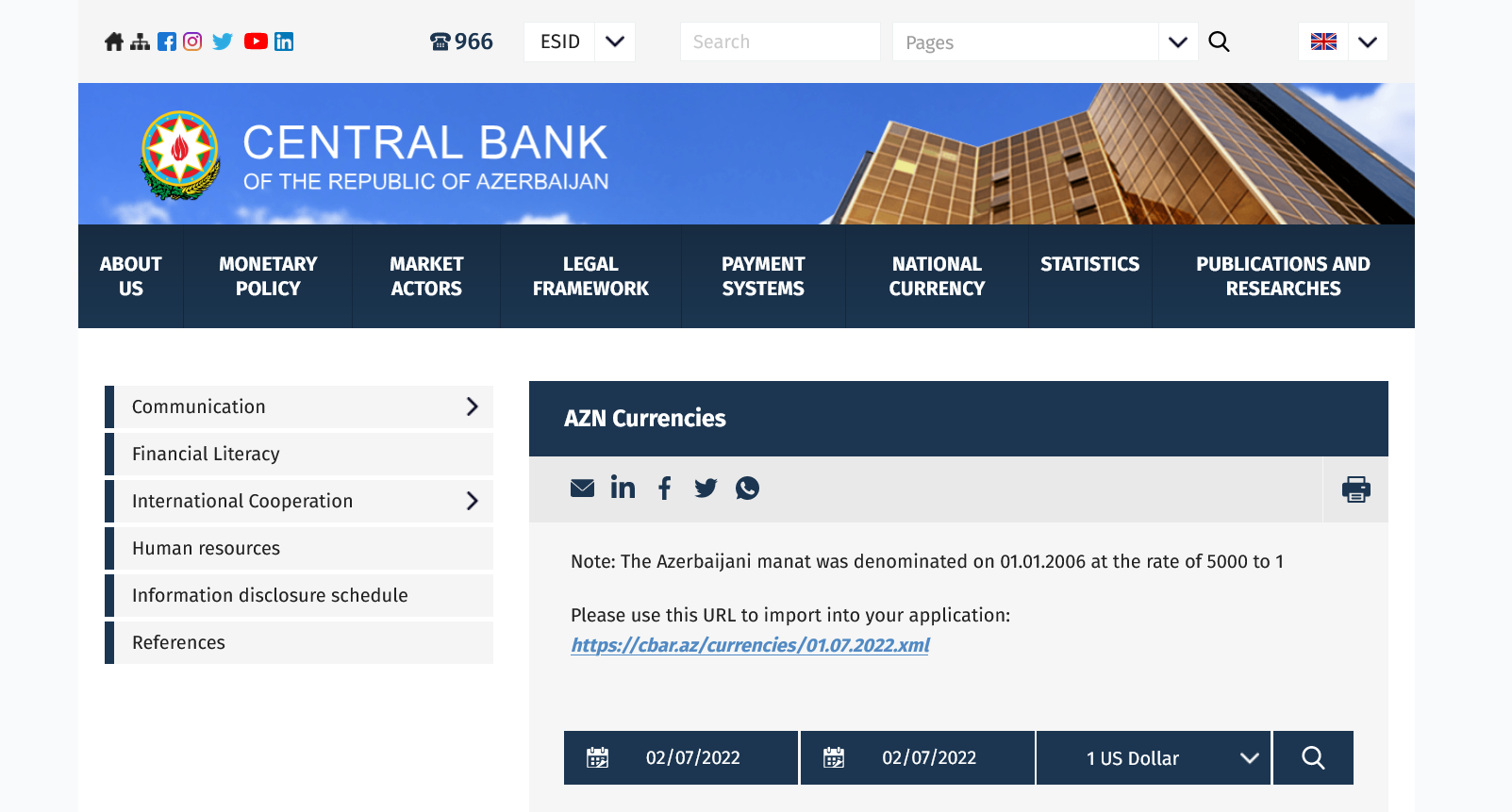 Central Bank of the Republic of Azerbaijan https://www.cbar.az/currency/rates?language=en