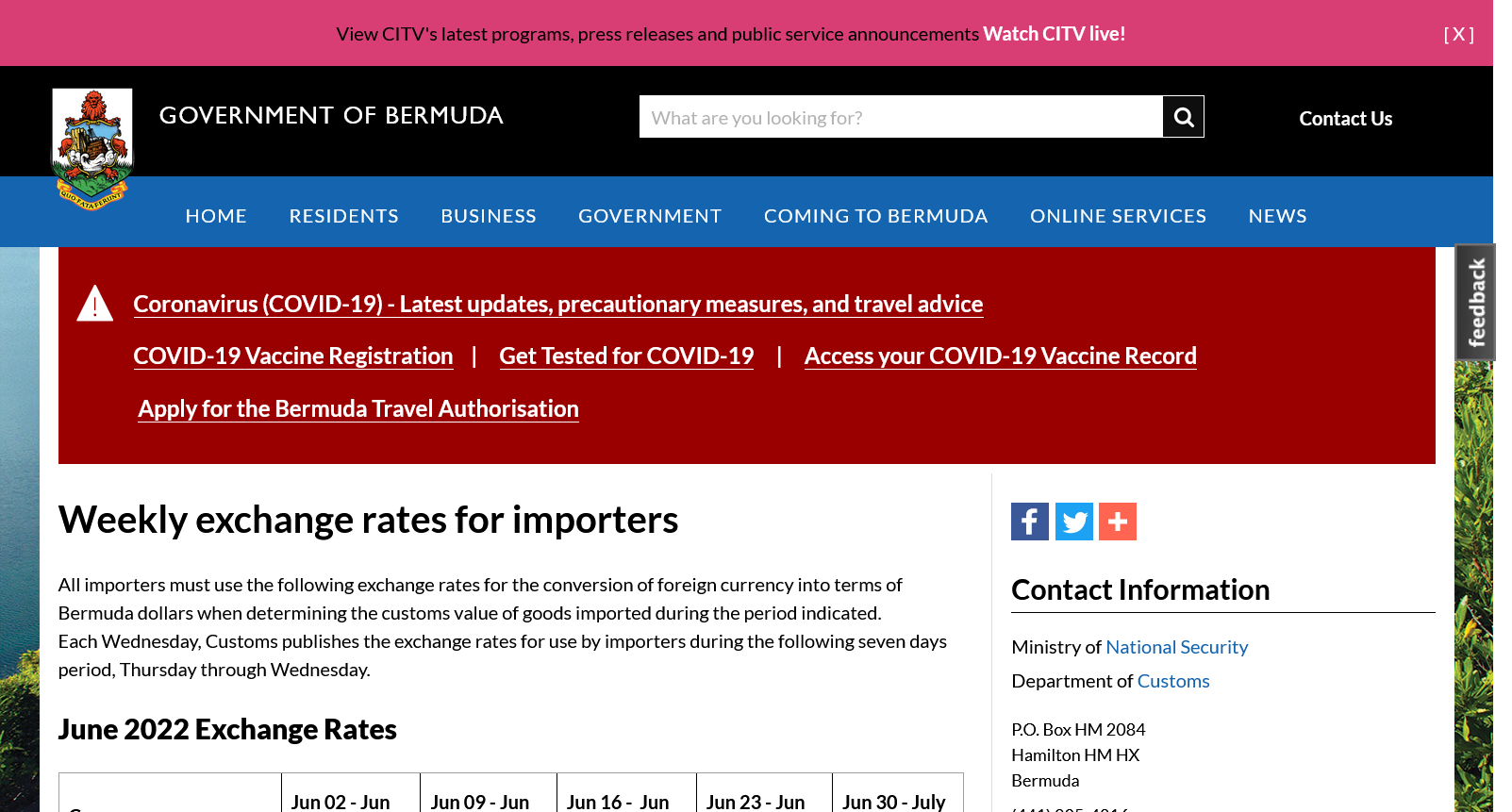 Government of Bermuda https://www.gov.bm/weekly-exchange-rates-importers