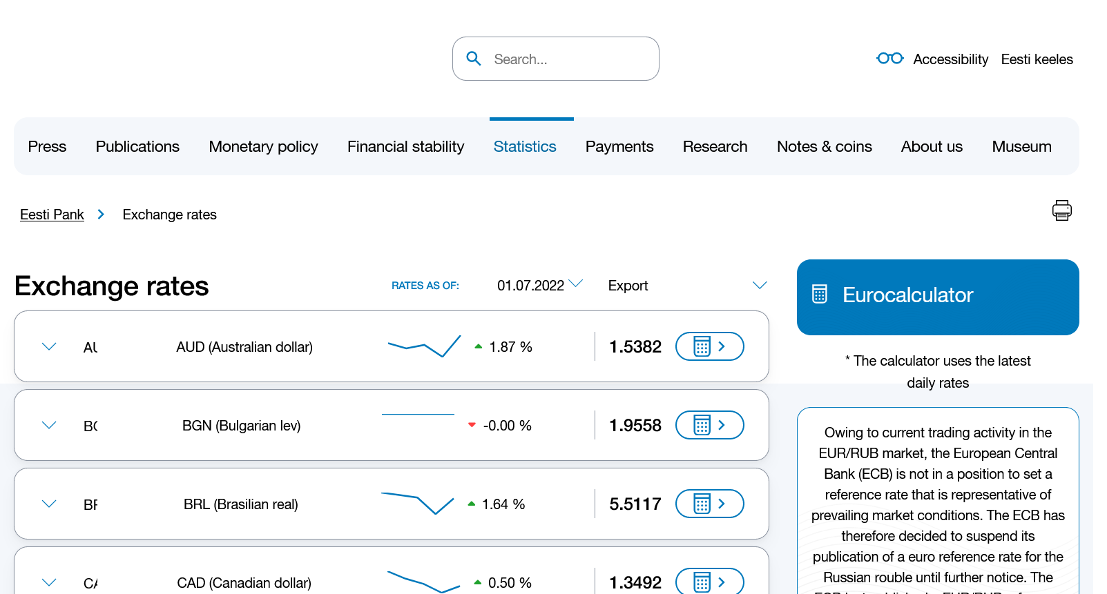 Estonia Bank https://www.eestipank.ee/en/currency-exchange