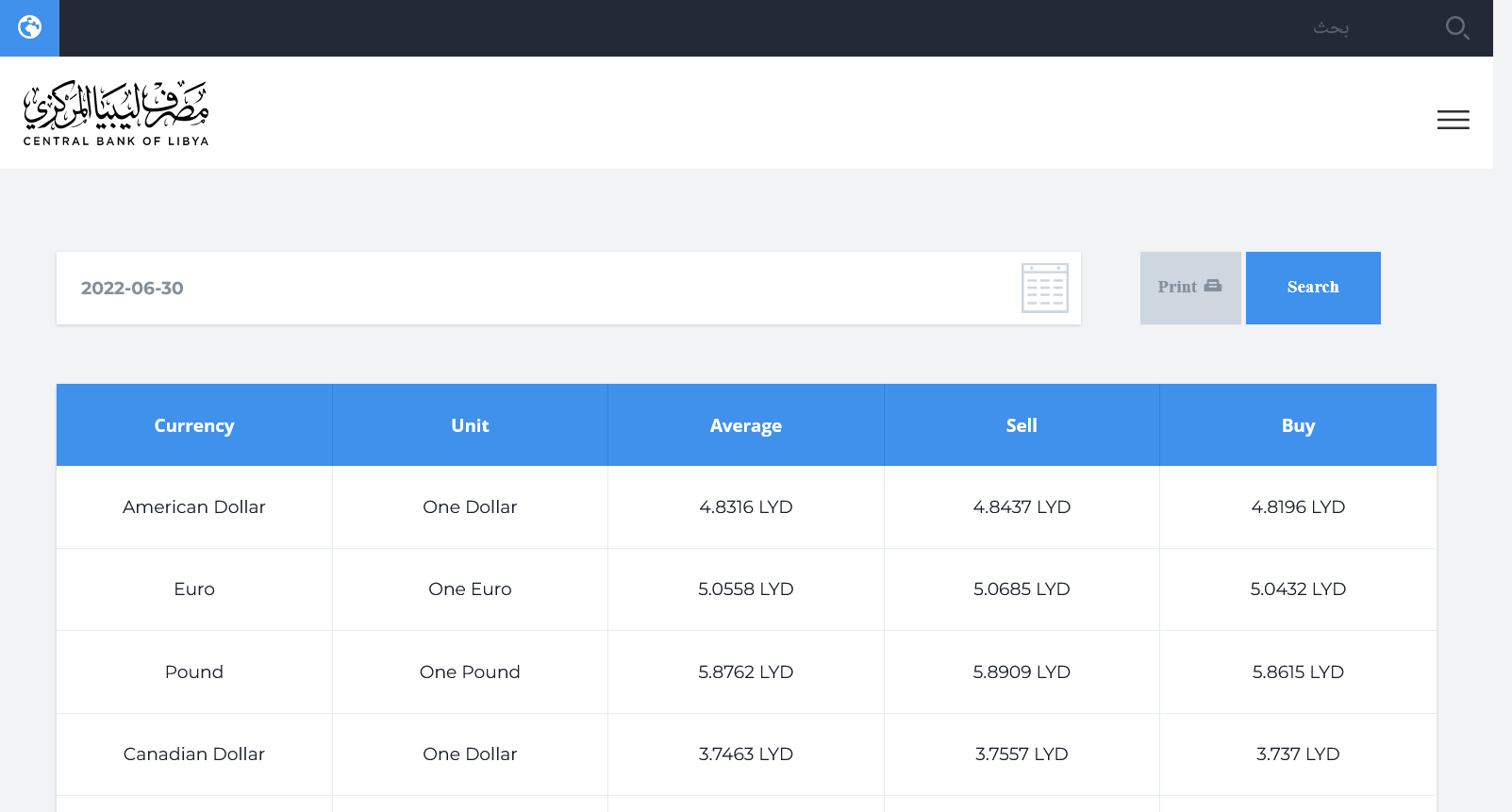 Central Bank of Libya https://cbl.gov.ly/en/%D8%A3%D8%B3%D8%B9%D8%A7%D8%B1-%D8%A7%D9%84%D8%B9%D9%85%D9%84%D8%A7%D8%AA/