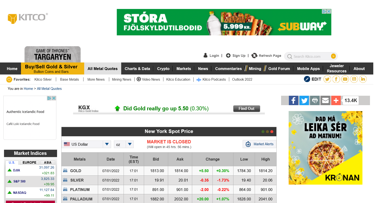KITCO https://www.kitco.com/market/