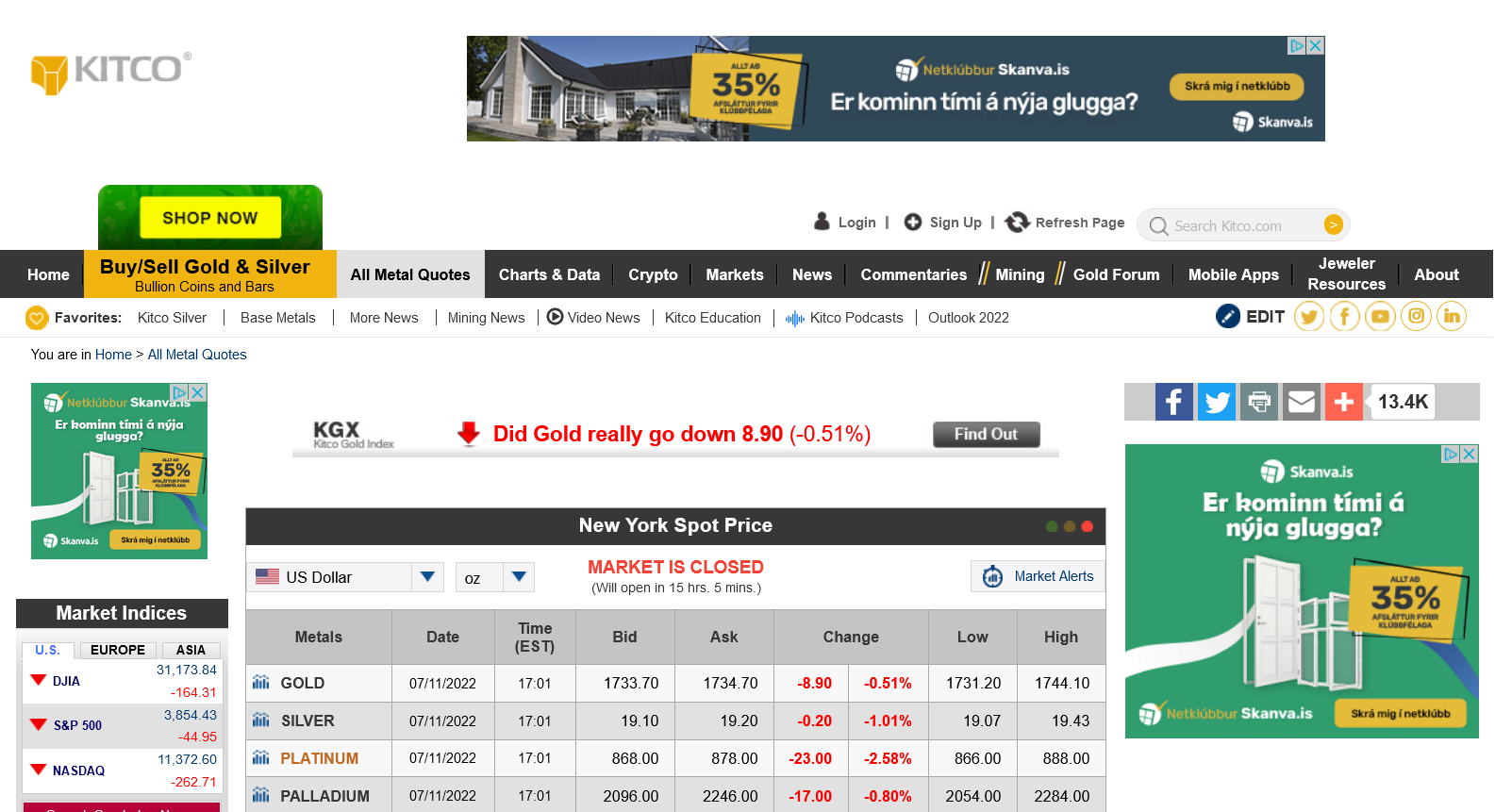 KITCO https://www.kitco.com/market/