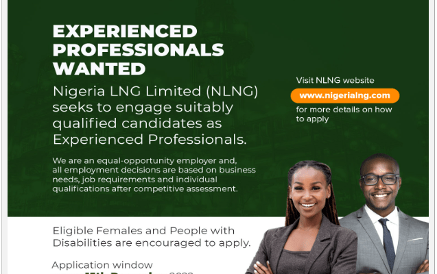 Above is the link for the jobs at NLNG. The vacancies include: