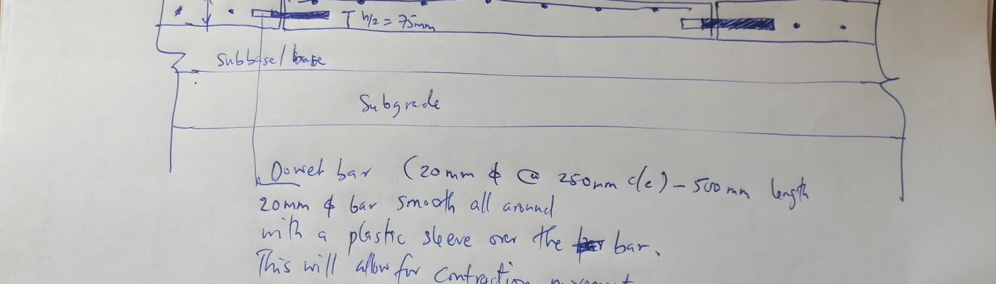 These are shorter bars which are placed at the mid-depth of the slab thickness and along the transverse joint of the pavements. (See photo for description of dowels). They are used to transfer load from one pavement segment to the next, such as: shear force, moments and ensures continuity; preventing differential movement. They often are smooth bars with a lubricating chemical applied (or a plastic sleeve) on two-thirds of the bar to allow for contraction movement.