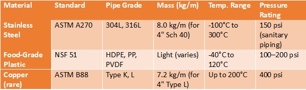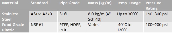 - ASME BPE (Bioprocessing Equipment – Hygienic Piping)