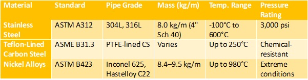 - ASTM A312 (Stainless Steel for Corrosive Fluids)