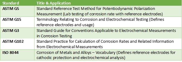 2.2.2 Codes of Practice and Standards Governing Reference Electrodes for Corrosion Inspection