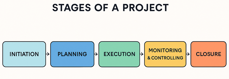 It is generally agreed the five stages of project life cycle in project management, show here in the figure 1. This caters for generic and academic purposes as a definition of project management. Although this perception was not always the case; it became apparent for complex projects prior to the 1990s that it was limited to generic projects.