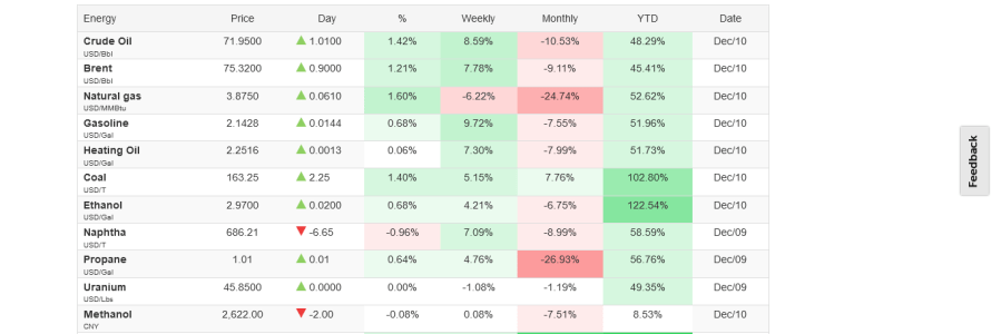 Commodity Prices – 23:05 GMT 15th December 2021