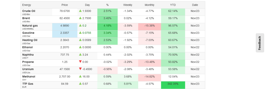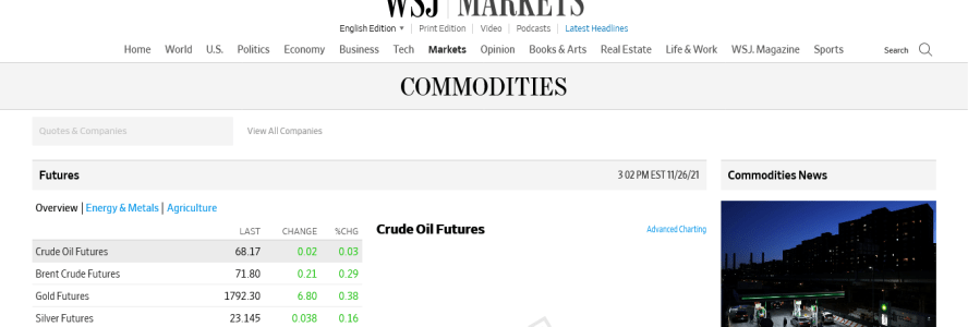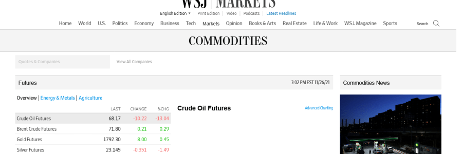 Commodity Prices – 19:50 GMT 29th November 2021