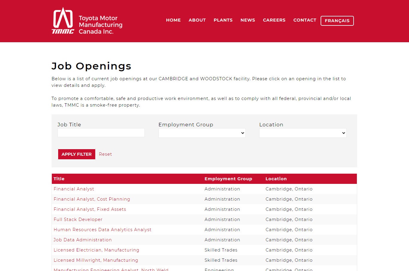 https://sekisuidiagnostics.com/careers/available-positions/ https://careers.stryker.com/job-search-results/ https://jobs.suncor.com/search/?redirect=true?locale=en_US&_ga=2.131071119.1218679835.1633277160-1529775676.1633277160 https://jobs.td.com/en-CA/job-search-results/ https://jobs.teck.com/search/?utm_source=careersite&utm_campaign=AllJobsButton_TeckCareers https://toyotamotorjobs.tmmc.ca/