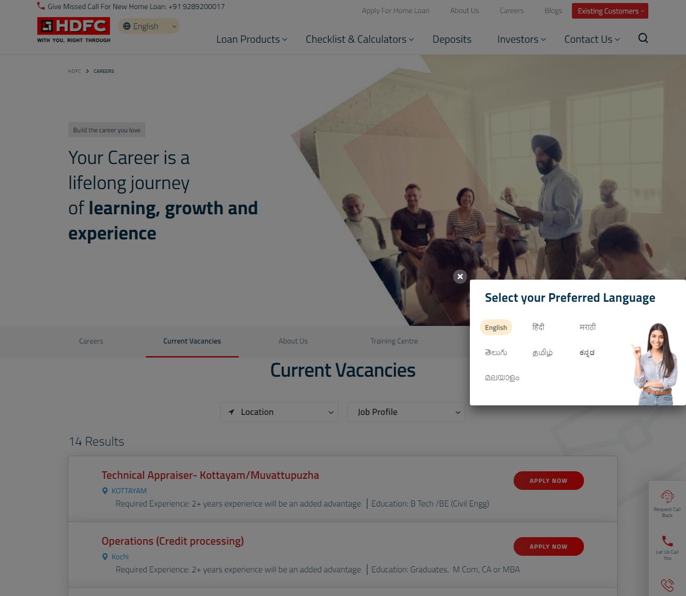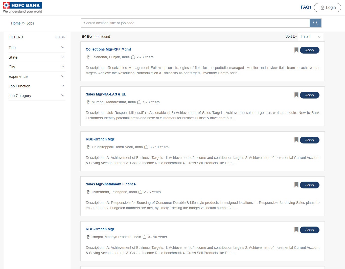 https://careers.ril.com/frmJobSearch.aspx?func=w+cpdiT6wL4=&loc=/wASbQn4xyQ=&expreq=/wASbQn4xyQ=&flag=/wASbQn4xyQ= https://www.tcs.com/careers/rebegin-jobs https://hdfcbankcareers.hirealchemy.com/#/listing https://career.infosys.com/joblist?countrycode=IN&companyhiringtype=IL https://www.hdfc.com/careers#current-vacancies https://eeji.fa.em3.oraclecloud.com/hcmUI/CandidateExperience/en/sites/CX_1/requisitions