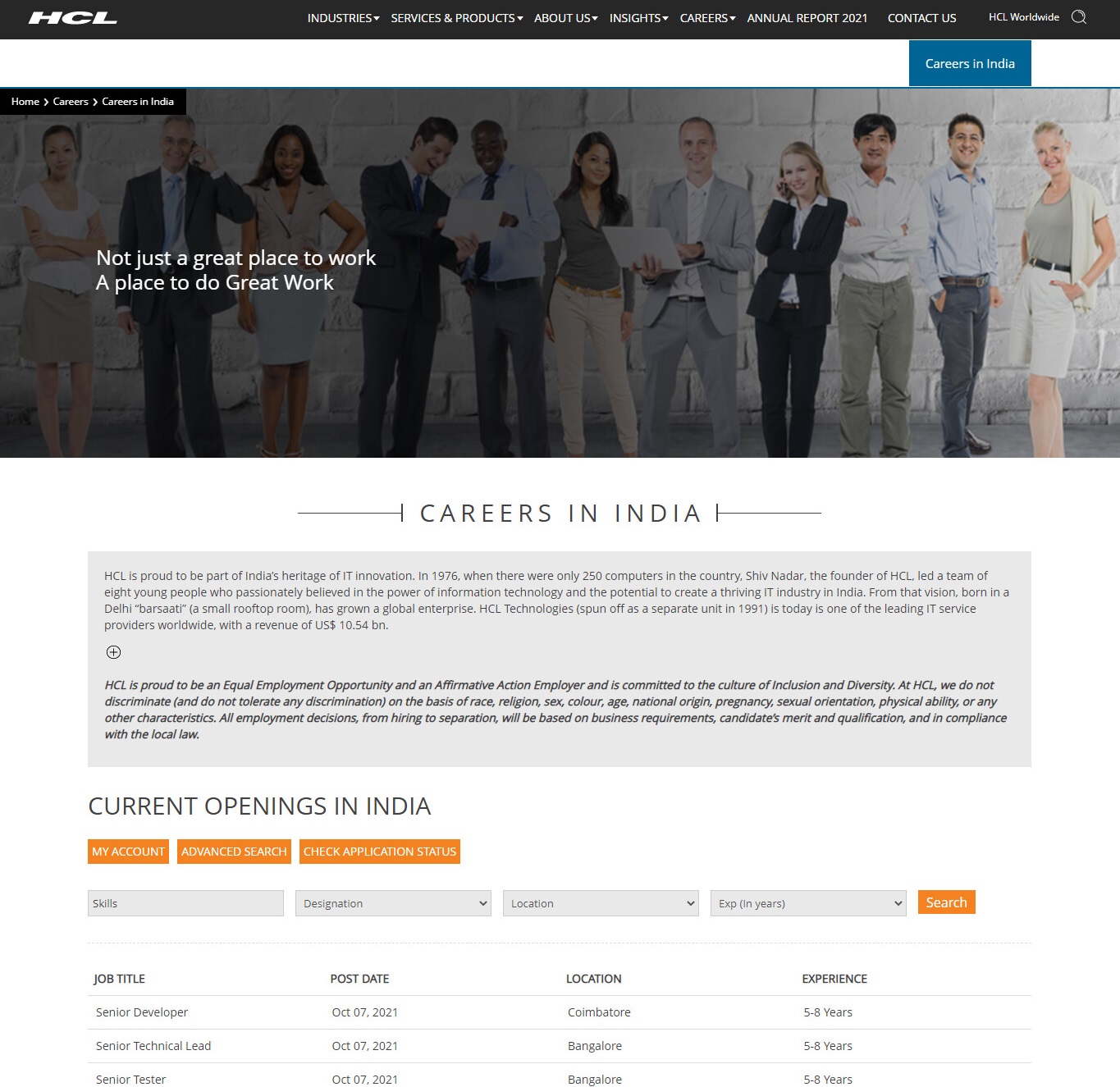 https://hcbt.fa.em2.oraclecloud.com/hcmUI/CandidateExperience/en/sites/CX https://www.hcltech.com/careers/Careers-in-india https://careers.wipro.com/careers-home/jobs https://asianpaints.thetalentpool.co.in/web/#/home/open-positions/list https://career10.successfactors.com/career?company=avenuesupe&career%5fns=job%5flisting%5fsummary&navBarLevel=JOB%5fSEARCH&_s.crb=JKn6Nkuogt%2f7eaZlHmqFnhghT2rzbeHARPEXM%2bhgdD0%3d https://www.ultratechcement.com/about-us/careers/work-with-us https://careers.sunpharma.com/search/?createNewAlert=false&q=&locationsearch= https://www.nestle.in/jobs/search-jobs/career-areas