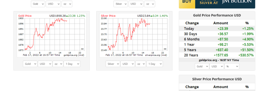 Gold, Silver and Metal Prices – 14:02 GMT 28th February 2022