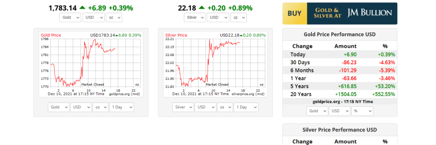 Gold, Silver and Metal Prices – 18:50 GMT 11th December 2021